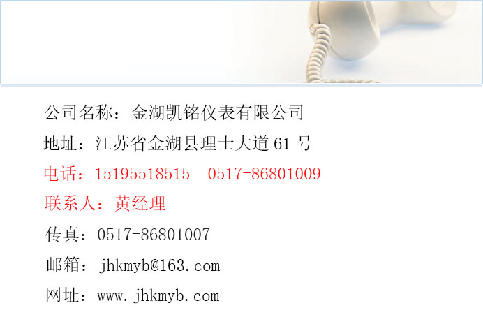 金湖凱銘儀表有限公司是一家生產儀器儀表廠家。本公司將以優(yōu)質的產品、優(yōu)惠的價格、歡迎新老客戶誠信合作。聯系電話:15195518515 黃經理