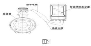 工業(yè)水處理流量計是由流量傳感器和轉(zhuǎn)換器(也叫顯示器)兩大部分組成。測量管上下裝有激磁線圈,通激磁電流后產(chǎn)生磁場穿過測量管,一對電*裝在測量管內(nèi)壁與液體相接觸,引出感應(yīng)電勢,送到轉(zhuǎn)換器。激磁電流則由轉(zhuǎn)換器提供。如圖2所示: