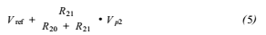 整個電路的工作過程為:當(dāng)P2.9為高電平時,Q1、Q2、Q3、Q4導(dǎo)通,此時Q5的基*電流為零,Q5截止,此時P2的端口2輸出+24V的電壓。此時P2.8為低電平,Q6、Q7、Q8、Q9,此時有電流流經(jīng)Q10基*,并使其基*和發(fā)射級導(dǎo)通,Q10的功能相當(dāng)于一個二*管的作用,此時P1端口沒有電壓輸出。那么,A/D轉(zhuǎn)換器的參考輸入端Vref(+)為: