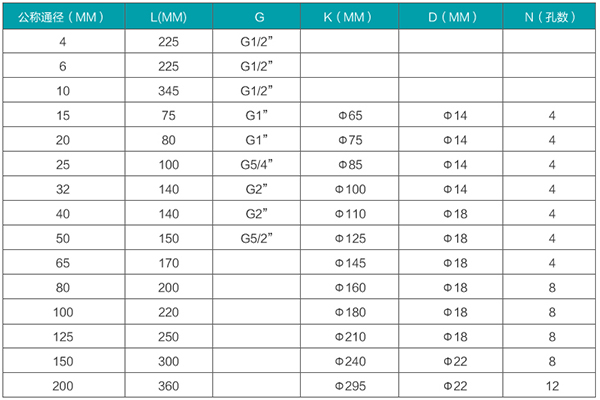 | DN4 | 0.04~0.25 | 0.04~0.4 | 螺紋安裝、6.3Mpa | 法蘭安裝、2.5MPa | 12、16、25 |