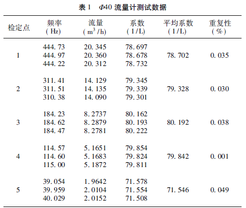 此次試驗測試選用兩臺加油站柴油流量計,口徑分別為Φ40、Φ25,主要考慮40 和25 口徑的流量計應(yīng)用較多,同時流量銜接,更具有代表性。其主要參數(shù)如下: