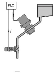 在灌裝系統(tǒng)中用到快速切斷閥(定量閥)來控制灌裝的啟停。快速切斷閥的控制原理:當電磁閥接收到PLC的輸出信號(由PLC采集灌裝流量計的脈沖信號后處理的輸出信號)時開始動作,通過執(zhí)行機構(gòu)帶動閥桿和閥芯向上運動,閥芯和閥座分開,流體通過閥座進入灌裝管道,開始灌裝,當電磁閥接收到PLC輸出信號關(guān)閉閥門時,閥桿向下運動,帶動閥芯向下運動,使閥芯和閥座接觸,從而切斷流體達到結(jié)束灌裝。本應用中控制閥的閥桿在管道中,流體從上向下流經(jīng)整個閥體,閥桿的動作行程分兩級,對應于小流量和較大流量。