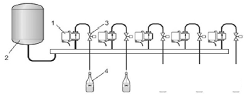 圖6 流量計和閥門的安裝位置示意圖(1代表灌裝流量計)
