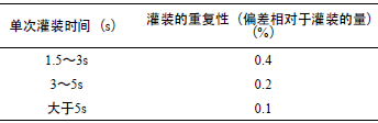 表1 灌裝時間和重復性的關(guān)系
