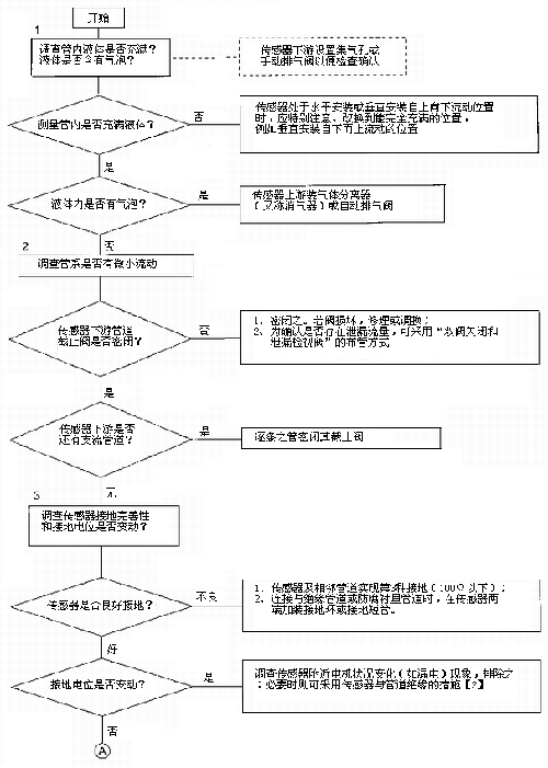 檢查流程圖*3項。管道雜散電流等外界干擾影響主要靠智能高溫水流量計良好的接地保護,通常要求接地電阻小于1000,不要和具他電機電器共用接地。有時候環(huán)境條件較好,智能高溫水流量計不接地亦能正常工作,但是一旦良好環(huán)境不存在,儀表會出現(xiàn)故障,屆時再作檢查會帶來堵多麻煩。