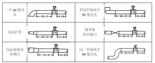 安裝要求:規(guī)范對高溫蒸汽流量計的安裝要求比較多,除了對高溫蒸汽流量計的前后直管段的要求如圖,