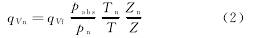 式中:qVn———標況下的體積流量,m3/s;pabs———工況下測得的氣體的絕對壓力,kPa;pn———標況下的參比壓力,101.325kPa;Tn———標況下的參比熱力學(xué)溫度,293.15K;T———工況下測得的氣體熱力學(xué)溫度,K;Zn———標況下的氣體壓縮因子;Z———工況下的氣體的壓縮因子。