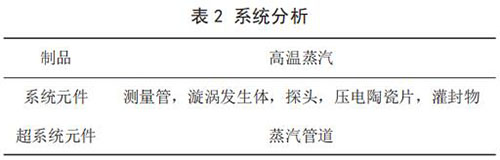 1)定義技術系統(tǒng)實現(xiàn)的功能。問題所在技術系統(tǒng)為二氧化硫流量計傳感器系統(tǒng);該技術系統(tǒng)的功能為轉(zhuǎn)換信號;實現(xiàn)該功能的約束:測量精度為 ±1%,成本提高控制在 20% 之內(nèi)。