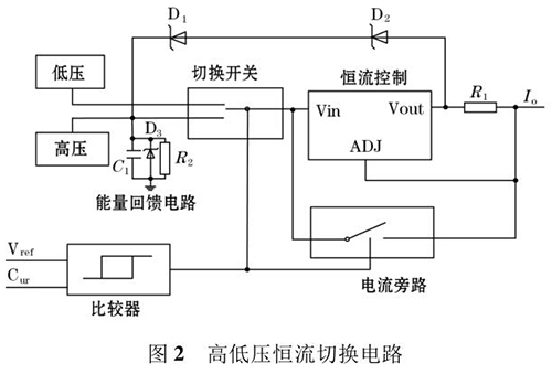 高頻勵磁電路主要由高低壓切換恒流控制電路和H 橋勵磁開關(guān)電路組成。其中高低壓切換恒流控制電路確保高壓或低壓情況,都可以通過 H 橋向勵磁線圈提供恒定的電流。電路原理圖如圖 2所示。
