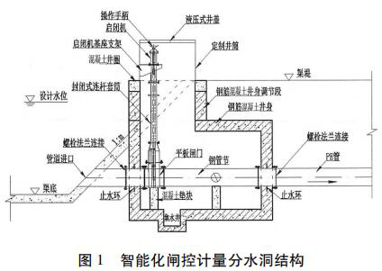 分水洞采用了一種封閉式啟閉閘集成閘井預制件,包括頂節(jié)、標準節(jié)和底座。與傳統(tǒng)現(xiàn)場澆筑的方式相比,集成閘井采用防水設計,并且安裝更加方便快捷,很大程度上提高了安裝效率,節(jié)約成本。采用事先預制好的啟閉閘支座、啟閉機機座,保證了設備的安裝精度,提高了設備運行的穩(wěn)定性,減少了設備的后期維護。分水洞結(jié)構(gòu)除了預制混凝土外,還可考慮采用玻璃鋼或工程塑料整體制作,用標準節(jié)調(diào)節(jié)高度。分水洞結(jié)構(gòu)設計見圖 1。