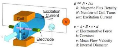 基本上,當導(dǎo)電液體流過磁場時,會感應(yīng)出電壓。為了測量該產(chǎn)生的電壓(與流動的液體的速度成正比),使用了兩個彼此相對安裝的不銹鋼電*。