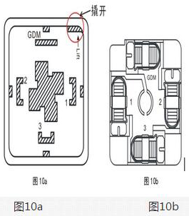 *先將豪斯曼接頭上部的螺絲松開拔下接頭部分,接頭部分結(jié)構(gòu)如圖10a所示,從缺口處撬開接線端子,接線端子如圖10b所示。