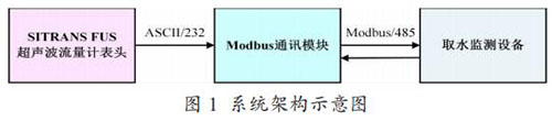 西門子 SITRANS FUS 外夾式水煤氣流量計的標準表頭支 持 4- 20mA 電流信號輸出,而水利部門的取水監(jiān)測設備應用層 采用的是 Modbus 協(xié)議,物理層采用的是 RS485 標準,無法與SITRANS FUS 流量計的表頭通信。針對這一問題,本文自主設 計并實現(xiàn)了一種支持 Modbus 協(xié)議的通信模塊,使得超聲波流量計表頭與取水監(jiān)測設備可以以 Modbus 協(xié)議進行通訊。