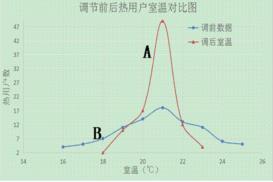 我公司在該小區(qū)管網改造前,在不同單元不同樓層分別安裝100臺室溫采集器。渦街氣體流量計調前數(shù)據(jù)采集于2017~2018年供熱期,調后數(shù)據(jù)采集于2018~2019年供熱期。經過兩個采暖期,共有96臺室溫采集器可以正常提供數(shù)據(jù)。數(shù)據(jù)分析結果見圖3所示。