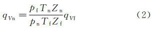 式中:qVf--工況條件下的體積流量,m3/h;qVn--標(biāo)準(zhǔn)狀態(tài)體積流量,m3/h;pf,pn--工作狀態(tài)、標(biāo)準(zhǔn)狀態(tài)流體絕對靜壓,MPa,pn=0.101325MPa;Tf,Tn--工況條件下、標(biāo)準(zhǔn)狀態(tài)流體熱力學(xué)溫度,K,Tn=293.15K;Zf,Zn--工況條件下、標(biāo)準(zhǔn)狀態(tài)氣體壓縮系數(shù)。