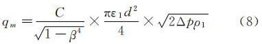 式中:C--流出系數(shù);β--直徑比,β=d/D;D--管道內(nèi)徑,m;d--工作條件下節(jié)流件的開孔直徑,m;ε1--節(jié)流件正端取壓口平面上的可膨脹性系數(shù);ρ1--節(jié)流件正端取壓口平面上的流體密度,kg/m3。