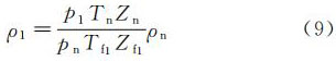 對于組分穩(wěn)定的氣體,可用式(9)計(jì)算ρ1: