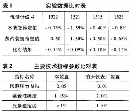 1)對同一臺蒸汽流量計在該裝置上的檢定結果與蒸汽流量檢定裝置上鑒定結果的比對如表1所示。該裝置準確度為1.25%。表1所列數(shù)據(jù)為誤差*大值。