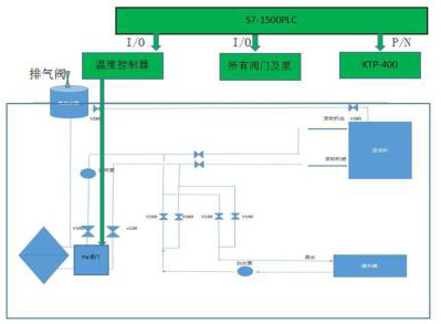 整個設備二氧化碳氣體流量計功能眾多,采用S7-1500PLC主導,考慮成本原因,PID控制部分采用好立的控制器進行,整個PLC只應用的I/O量,實現(xiàn)整個流量計控制功能,一體化的控制提高了整套設備的可靠性,更換流量計管路材質(zhì)可以進行潤滑油及燃油的溫度控制,該流量計在內(nèi)燃機測試及電動新能源冷卻等方面有廣闊前景。該流量計同時具備二次開發(fā)能力,通過PLC的net口可以進行MES擴展,信號連接到主機廠的中控,實現(xiàn)遠程監(jiān)控和控制,實現(xiàn)工廠智能管理。