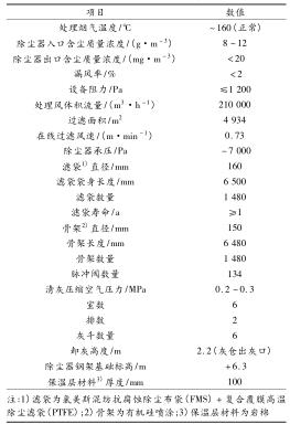 (2) 新建布袋除塵及氣力輸灰氦氣流量計(jì)。采用長(zhǎng)袋低壓脈沖袋式(外濾式)除塵器,煙氣體積流量為 210 000 m 3 /h,初 始 含 塵 質(zhì) 量 濃 度 為 8 ~12 g/m 3 ,除塵占地面積為 20 m 2 (5 m ×4 m)。除塵器主要由本體、壓縮空氣系統(tǒng)、控制系統(tǒng)、輸灰系統(tǒng)組成。除塵器后進(jìn)脫硫塔煙塵質(zhì)量濃度≤20 mg/m 3 。除塵器的總阻力≤1 200 Pa。新建布袋除塵器型號(hào)為 LCMD-4934,設(shè)計(jì)參數(shù)見(jiàn)表 2,其中清灰方式采用離線清灰,除塵器布置方式為矩形布置,電氣控制采用可編程邏輯控制器(PLC)。