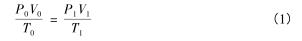 式中:P 0 ,P 1 分別為標準狀態(tài)下和工況下的絕對壓力(Pa);T 0 ,T 1 分別為標準狀態(tài)下和工況下的熱力學(xué)溫度(K);V 0 ,V 1 分別為標準狀態(tài)下和工況下的氣體體積。
