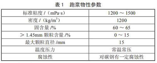 對跑漿進行分析后發(fā)現(xiàn),跑漿是一種由煤漿和一些雜質混合而成的半流體物質,當管道蒸汽流量計使用煤倉中煤堆中上部煤時,由于煤質較好,跑漿中小煤塊*少,性質同正常煤漿,只是固含量稍高;而使用煤堆底部的煤時,煤質差管道蒸汽流量計研磨不充分,跑漿中含有約 15% 的小煤塊,分析后的跑漿物質參數(shù)如表 1 所示。