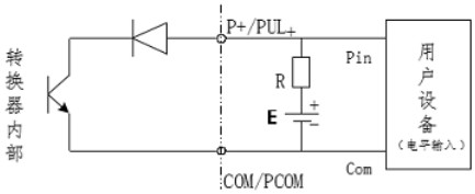 PUL+/ P+、ALM+(AH)、ALM-(AL)和 PDIR(FDIR)均為集電*開路(OC 門)輸出(參閱圖 3.6b、3.6d,用戶接線時必須參照如下電路外接電源和負載:
