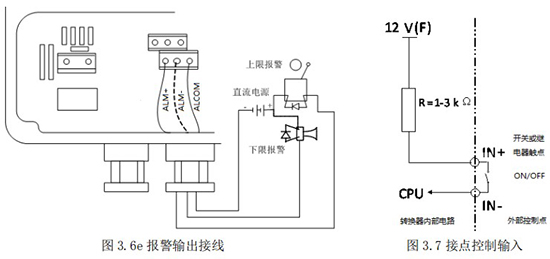 3.4.5 頻率(脈沖)、上下限報警、流向標示等輸出均為集電*開路的電平輸出信號。