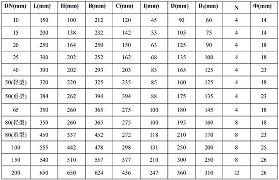 *DN10/DN50(輕型)/DN65/DN80(輕型)法蘭尺寸為 1.6MPa 標(biāo)準(zhǔn);其余口徑為 6.4MPa 標(biāo)準(zhǔn);