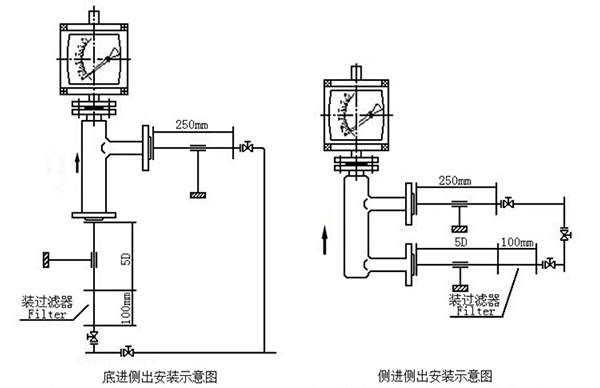 4.若介質(zhì)中含有固體雜質(zhì),應(yīng)在閥門和直管段間加裝過濾器;若介質(zhì)中含有鐵磁物質(zhì),應(yīng)在指針浮子流量計(jì)的上游安裝磁過濾器。