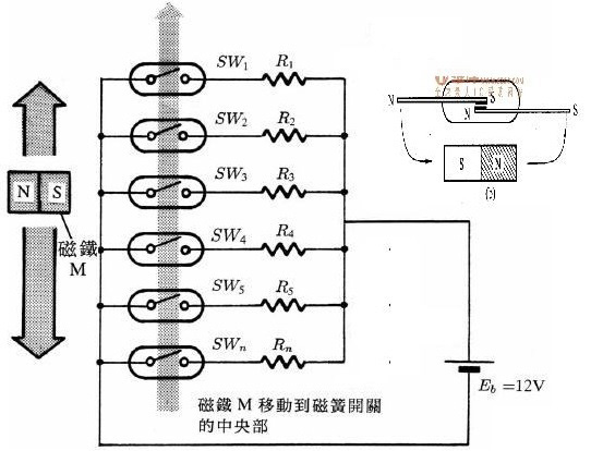 磁變送器(干簧管變送器):與磁開關(guān)的原理相似,它是捆綁在浮筒外面。當(dāng)浮筒里面的浮子隨著液位變化時,上下移動,浮子中的磁鋼所在的位置將改變干簧管中磁開關(guān)的狀態(tài)(閉合),只有在磁鋼作用范圍內(nèi)的干簧管閉合,其它都處于開路狀態(tài),從而改變回路的電阻值,或者說是改變了輸出回路的阻值。浮子的位置相當(dāng)與電位器的滑動點,隨著浮子的位置變化,引起上下電阻的抽頭(上下電阻值)變化,液位越低,電阻值越大,越高電阻越小(出線在頂部)。由于回路是恒(定電)流,再通過電流/電壓轉(zhuǎn)換,進(jìn)而可以轉(zhuǎn)化為4~20mA/HART 等信號。液位變化,液位旁邊的磁開關(guān)閉合,電阻值變化,輸出電壓隨之變化。
