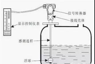 原理: 浮球液位計結(jié)構(gòu)主要基于浮力和靜磁場原理設計生產(chǎn)的。帶有磁體的浮球(簡稱浮球)在被測介質(zhì)中的位置受浮力作用影響:液位的變化導致磁性浮子位置的變化。浮球中的磁體和傳感器(磁簧開關)作用,使串連入電路的元件(如定值電阻)的數(shù)量發(fā)生變化,進而使儀表電路系統(tǒng)的電學量發(fā)生改變。也就是使磁性浮子位置的變化引起電學量的變化。通過檢測電學量的變化來反映容器內(nèi)液位的情況。
